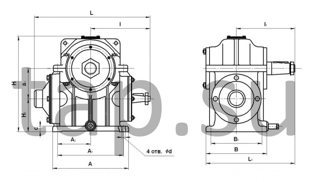 | Типоразмер | L | L1 | l | l1 | H | H1 | d | B | B1 | c | A | A1 | A2 |